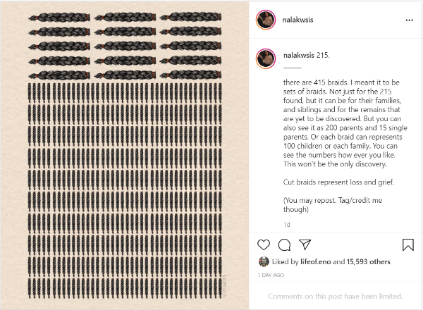 We have witnessed our social media feeds showcasing beautiful and inspiring images and posts with messages of solidarity for #EveryChildMatters”. We would like to take a few moments to profile these talented artists that have come together to show their support.